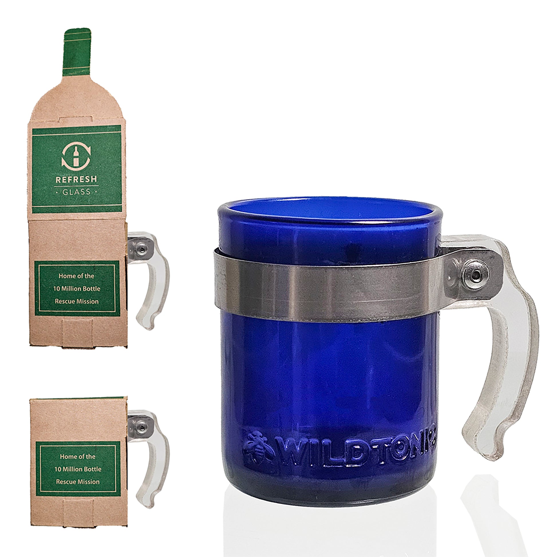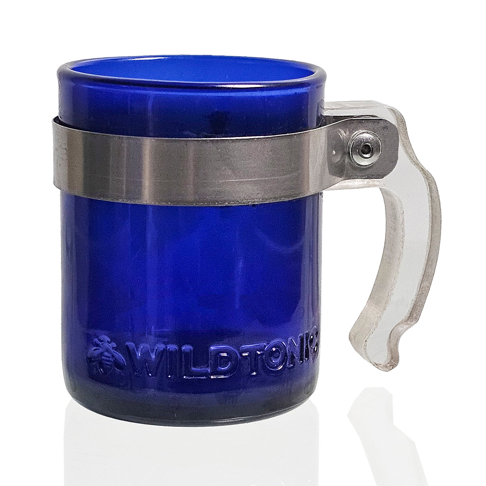 These coffee mugs look and feel great! The glass is from our 10 million bottle rescue mission and the bamboo handles are CNC cut and rounded in house. The strap is a food safe stainless steel and a rivet holds the handle on securely.