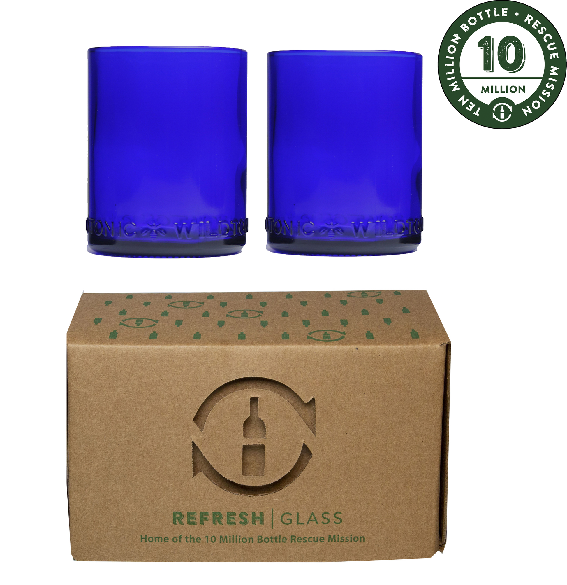 Refresh Glasses are shipped in custom packaging that shows our story, in sets of 4. Each glass is created from a wine bottle that we collected from local bars and restaurants, working towards our 10 Million Bottle Rescue Mission. During our process the glasses are melted to create a smooth, even, rounded rim. The final step of our process stress relieves the glass so they are dishwasher safe and you can continue to enjoy using the glasses for years to come. Don't be fooled by others who purchase bottles from the factory or wineries overstock (without helping the environment) or have rough and sharper sanded rims. We pride ourselves on our rescue mission and quality.