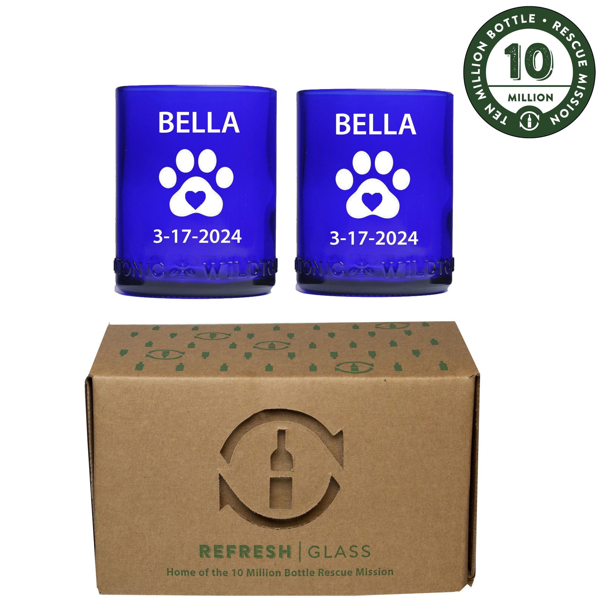 12oz Set of 2 Cobalt Glasses :: Love and or Remember your Dog or Cat