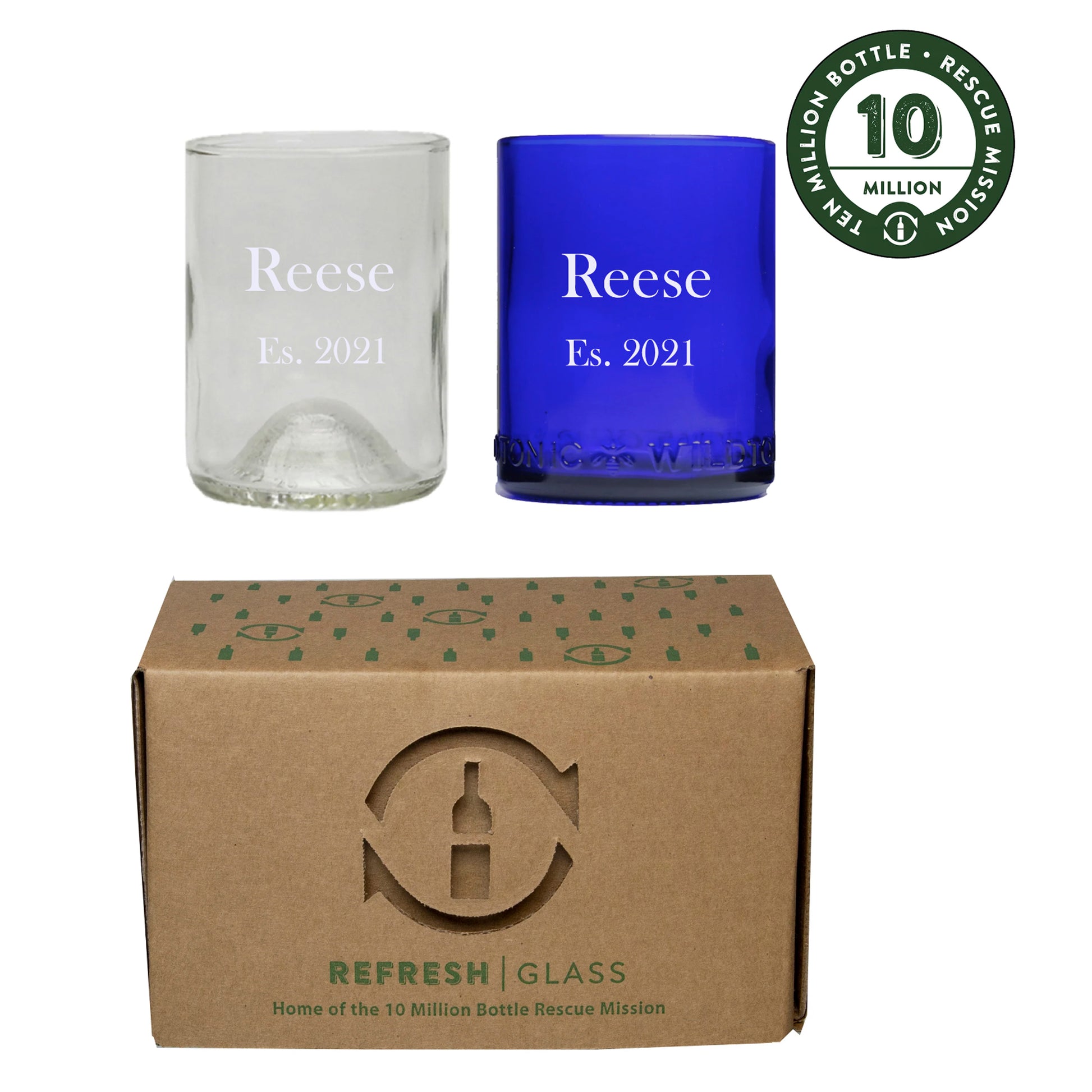 Refresh Glasses are shipped in custom packaging that shows our story, in sets of 4. Each glass is created from a wine bottle that we collected from local bars and restaurants, working towards our 10 Million Bottle Rescue Mission. During our process the glasses are melted to create a smooth, even, rounded rim. The final step of our process stress relieves the glass so they are dishwasher safe and you can continue to enjoy using the glasses for years to come. Don't be fooled by others who purchase bottles from the factory or wineries overstock (without helping the environment) or have rough and sharper sanded rims. We pride ourselves on our rescue mission and quality.