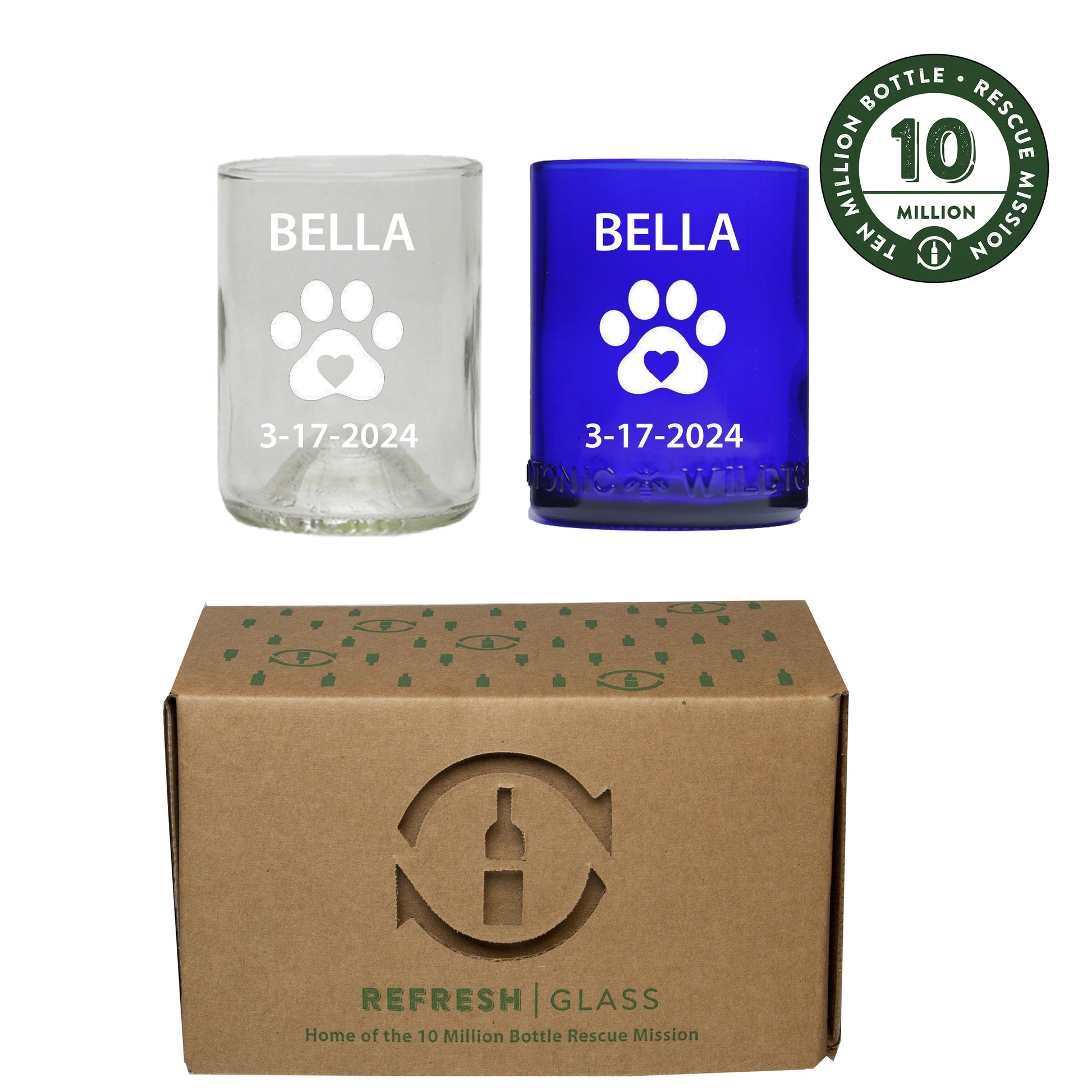 Refresh Glasses are shipped in custom packaging that shows our story, in sets of 4. Each glass is created from a wine bottle that we collected from local bars and restaurants, working towards our 10 Million Bottle Rescue Mission. During our process the glasses are melted to create a smooth, even, rounded rim. The final step of our process stress relieves the glass so they are dishwasher safe and you can continue to enjoy using the glasses for years to come. Don't be fooled by others who purchase bottles from the factory or wineries overstock (without helping the environment) or have rough and sharper sanded rims. We pride ourselves on our rescue mission and quality.