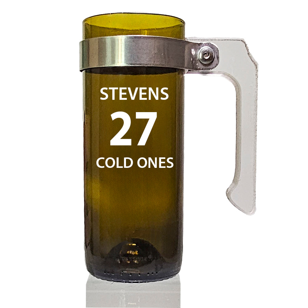 This tall 18oz mug has a handle made from ice rink glass (acrylic). These are a great gift for your hockey, figure skating fan or family member.