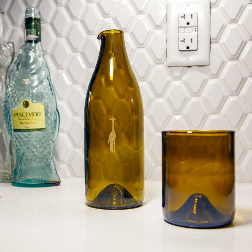 Phoenix Zoo animal silhouette amber carafe and glass nesting set