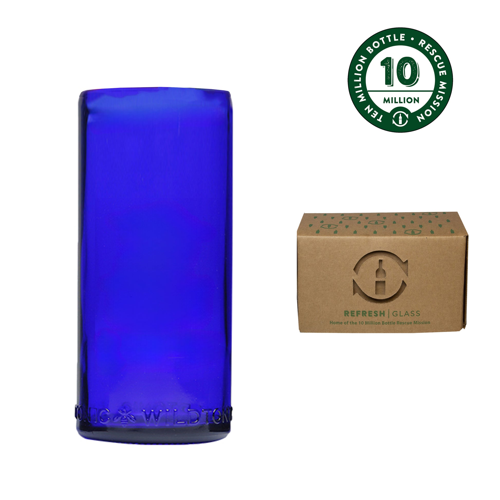 Refresh Glasses are shipped in custom packaging that shows our story, in sets of 4. Each glass is created from a wine bottle that we collected from local bars and restaurants, working towards our 10 Million Bottle Rescue Mission. During our process the glasses are melted to create a smooth, even, rounded rim. The final step of our process stress relieves the glass so they are dishwasher safe and you can continue to enjoy using the glasses for years to come. Don't be fooled by others who purchase bottles from the factory or wineries overstock (without helping the environment) or have rough and sharper sanded rims. We pride ourselves on our rescue mission and quality.